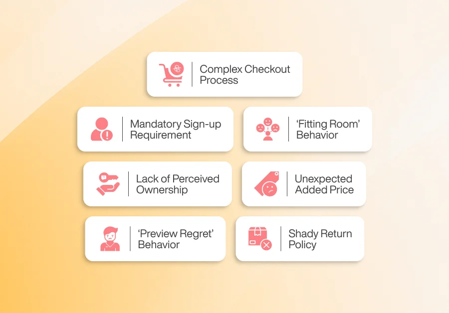 - Common reasons for cart abandonment include complex checkout, mandatory sign-up, fitting room behavior, and a lack of perceived ownership.